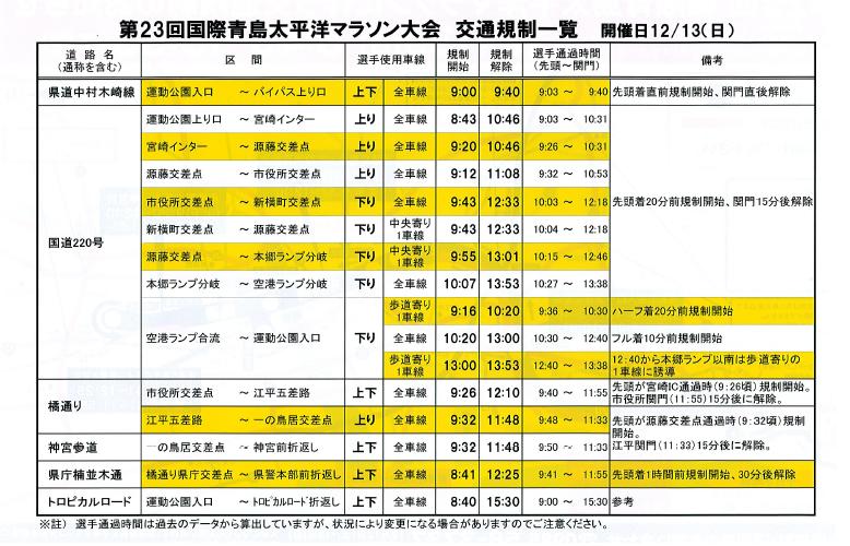 国際青島太平洋マラソン大会実行委員会様より交通規制情報の画像UP許可をいただきましたので、詳しい内容が知りたい方は画像をクリックしてください。