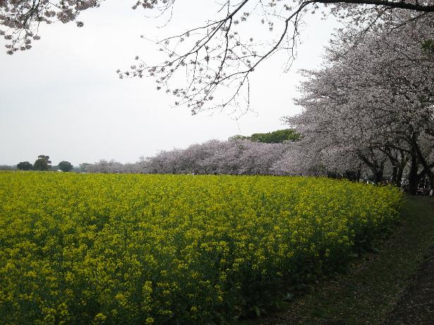 広大な菜の花のむこうを満開の桜が縁取る風景は、本当にきれいでした。