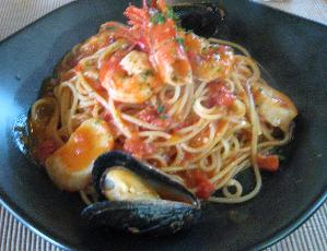ちょっと写真がピンボケで画像が小さいのですが、エビやムール貝、ホタテが入っています。