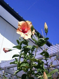 でも、11月も後半だというのに、秋空を背景にハイビスカス。