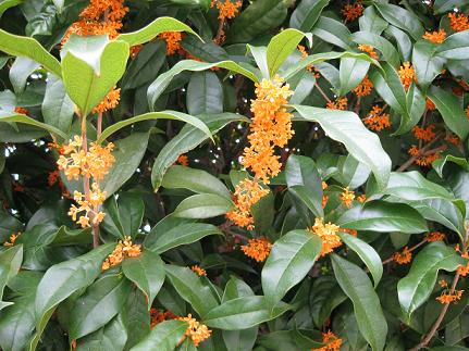 宮崎市内ではきんもくせいがあちこちでオレンジ色の花と香りを披露していますね。