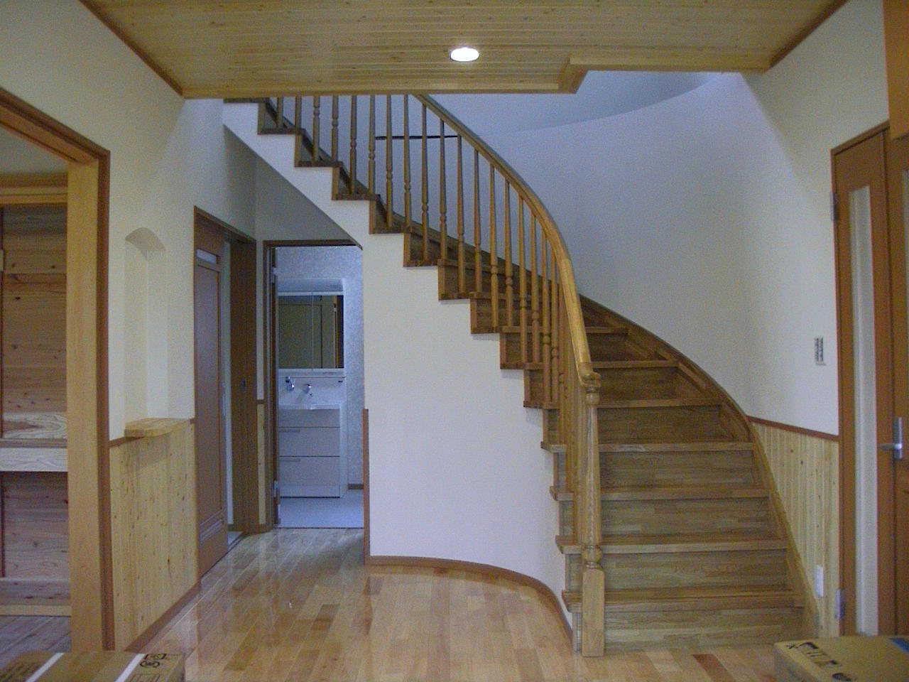 曲線の階段がまず目を引きます。外国映画に出てきそうでしょう?