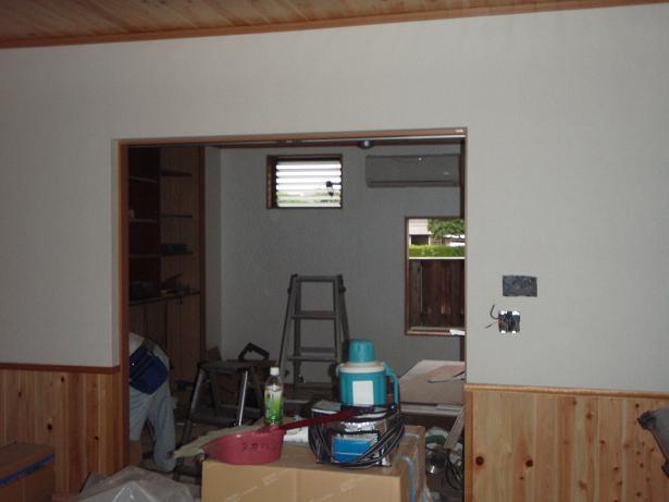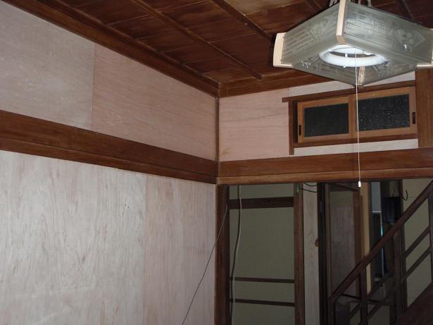 今回は、既存の土・砂壁からクロス・板張りにします。