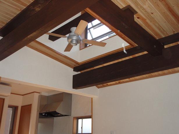 右にちらっと見えているルーバー窓は、下の写真の天井付ファンからの風の通り道。