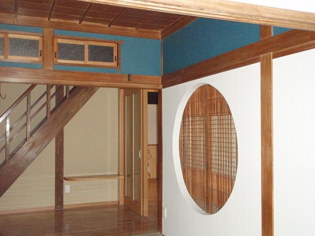風情のある天井と建具はそのまま。下の完成写真にある丸窓の障子も、とても素敵です。